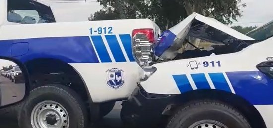 Desde hace poco más de media hora, empezaron a difundirse en grupos de prensa, un par de videos que muestran el estado de cuatro camionetas 0 KM de la Policía que tuvieron un choque en cadena en la avenida Santos Ortiz.