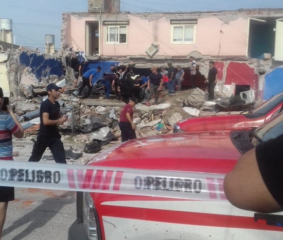 Siendo las 16.30, 3 personas han sido rescatadas de entre los escombros y se trabaja arduamente para encontrar más gente. Por lo que marcaron los canes de la Policía y lo dicho por uno de los rescatados, que está internado en el Hospital San Luis, quedaría una persona atrapada entre los escombros.