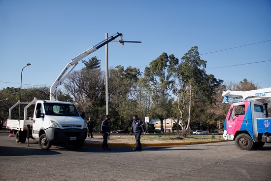 Cuadrillas municipales instalaron una torre de iluminación en la rotonda de Puente Blanco. La nueva estructura consta de 3 luminarias LED de 160 watts. Las tareas se realizaron este viernes.