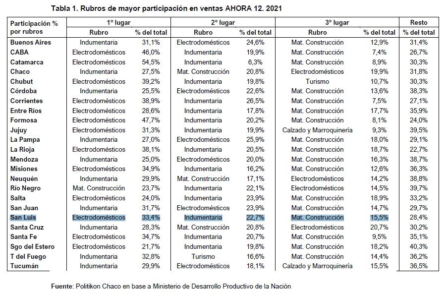 La consultora Politikón Chacho elaboró un informe que revela cuáles fueron los principales rubros de productos que más compraron los sanluiseños con el plan Ahora 12 en 2021.