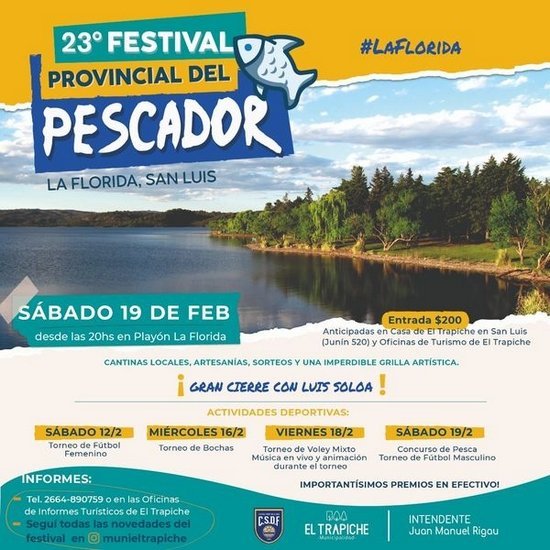 El 23 Festival Provincial del Pescador en La Florida comienza este sábado con eventos deportivos y seguirá el sábado 19 con más deportes y shows artísticos.