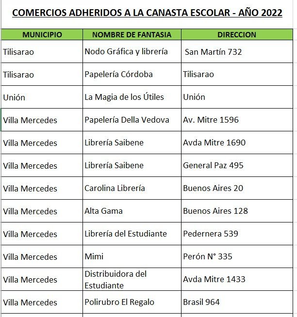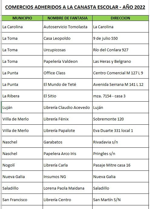 Los productos ya se encuentran a la venta en 52 comercios adheridos distribuidos en 24 localidades de la provincia: San Luis, Villa Mercedes, Villa de Merlo, La Punta, La Toma, San Francisco, Justo Daract, Candelaria, Juana Koslay, Beazley, Carpintería, Concarán, Luján, Cortaderas, Naschel, Nogolí, Tilisarao, San Martín, Nueva Galia, Unión, La Carolina, San Pablo, Saladillo y Juan Llerena.