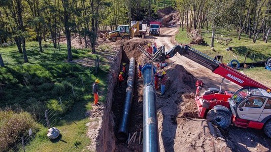 “La cañería, que es el componente principal de la obra y significa el 40% del presupuesto, se fabricó en la planta de Italvinil, ubicada en la ciudad de San Luis, con un proceso diseñado exclusivamente para esta obra, generando mano de obra indirecta”, recordó Yanzón.