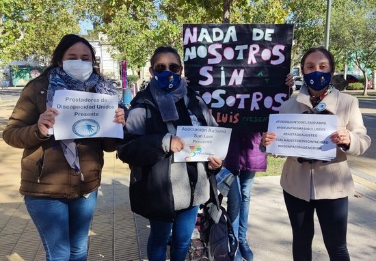 “Hay un proceso de aprobar una nueva ley, pero hay que leerla muy bien porque deja muchos espacios vacíos, especialmente en lo que respecta al transporte, que lo quieren pasar al Transporte, y lo que es las maestras especiales pasarlas a Educación. Nosotros no queremos eso, sabemos que Discapacidad precisa de las maestras de apoyo y del transporte específico de discapacidad”, manifestó Johana López, una de las mujeres que participó de la movilización que se realizó en San Luis.