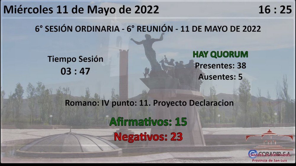 Hubo mÔs alocuciones de legisladores sobre el proyecto de declaración que se trató durante 4 horas. La votación se hizo a las cerca de la 16.30. Como era de esperar se rechazó la iniciativa por 23 votos negativos contra 15 afirmativos.