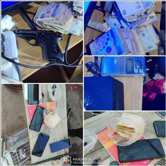 Relaciones Policiales detalló que el allanamiento se realizó en una casa en la manzana LL del barrio donde se encontraron envoltorios de nylon que contenían cocaína, dinero en efectivo, una balanza digital, un arma de fuego, una de aire comprimido y celulares, entre otros objetos.