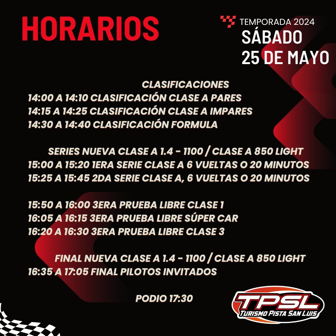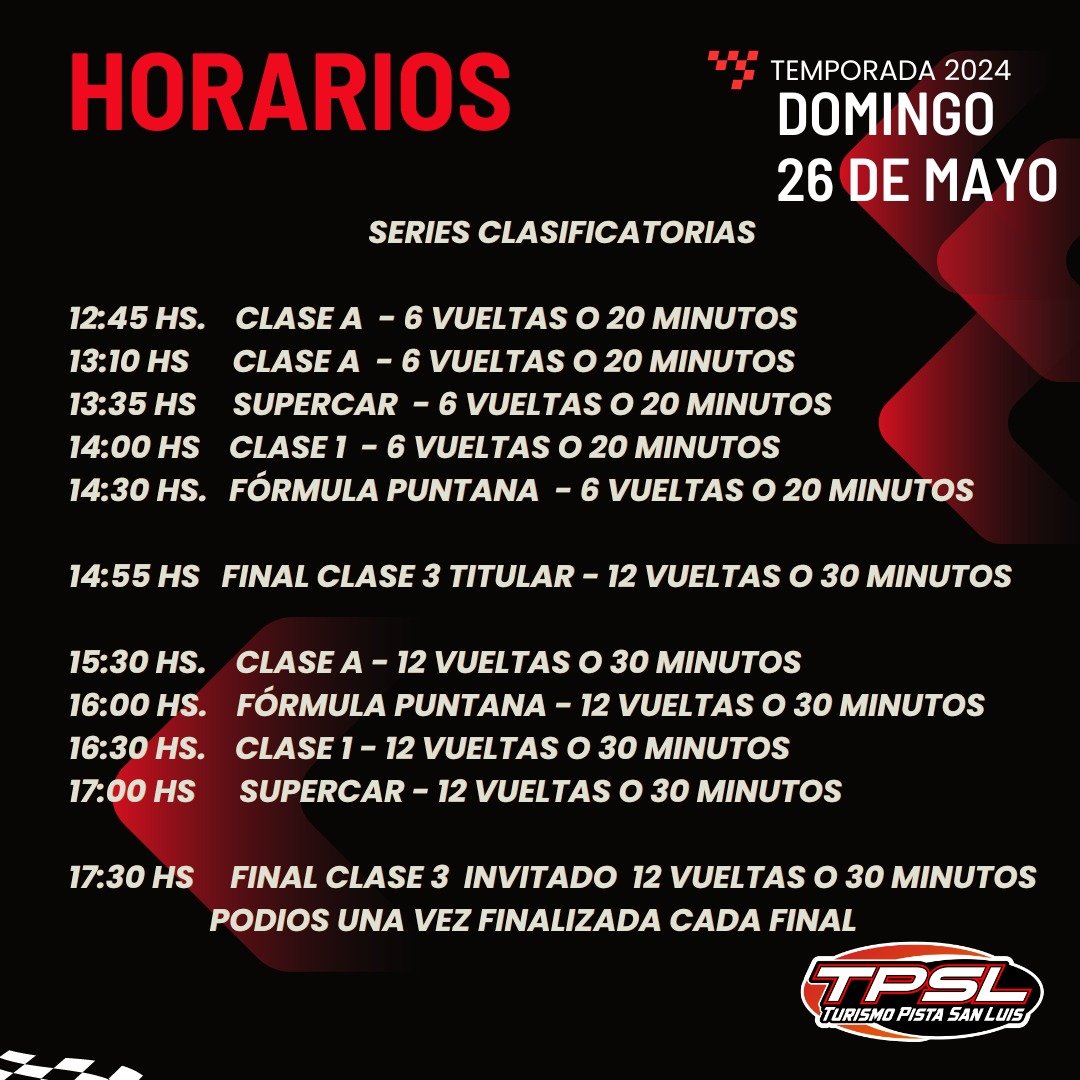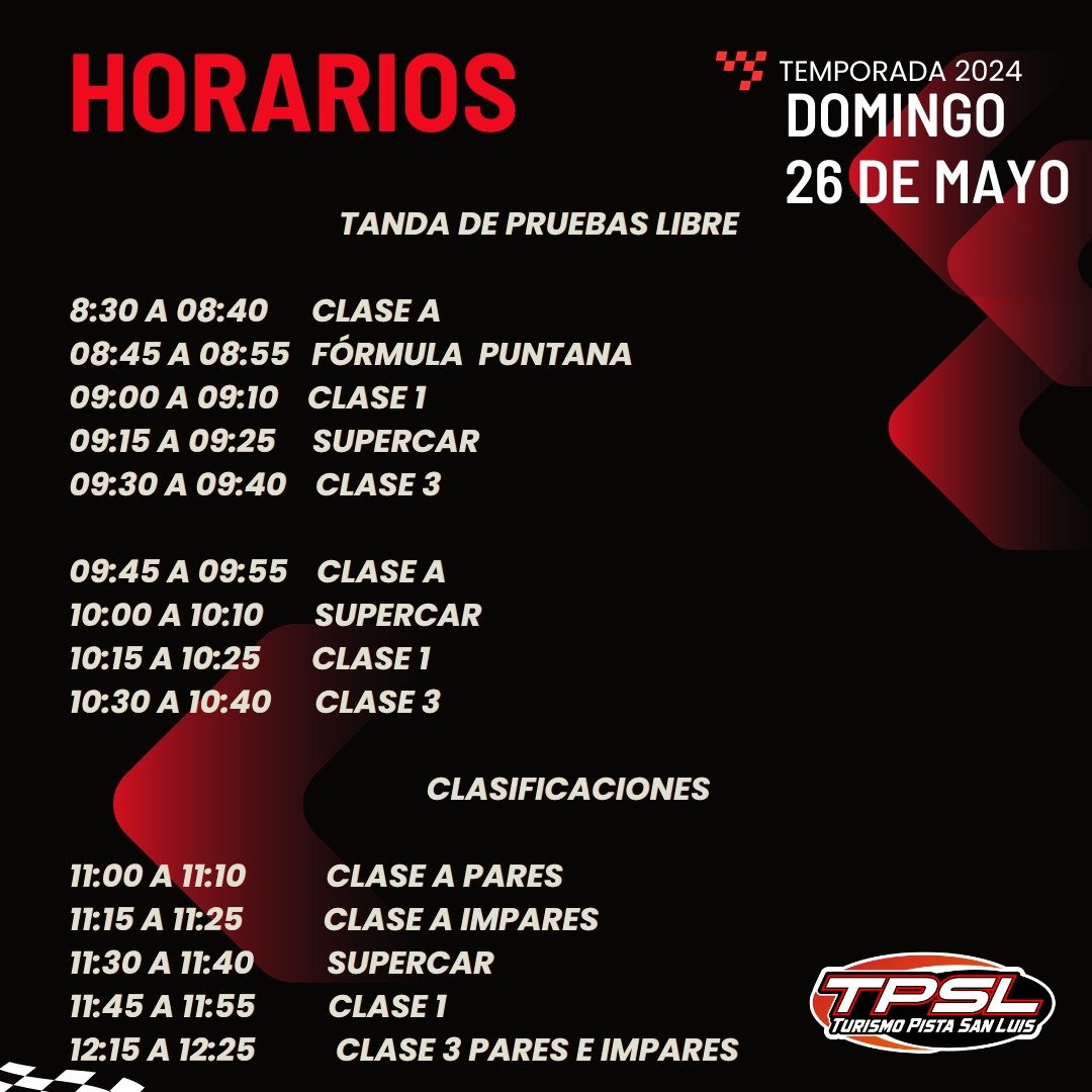 El domingo, los motores volverán a hacerse sentir desde las 8:30 con pruebas libres para las restantes categorías: Fórmula Puntana, Clase 1, Supercar y Clase 3. Las clasificaciones tendrán lugar desde las 11:00, mientras que las series clasificatorias de 6 vueltas o 20 minutos comenzarán a las 12:45. Pero sin duda, lo más esperado serán las finales a partir de las 14:55, con competencias de 12 vueltas o 30 minutos para definir a los ganadores del segundo capítulo de la temporada.