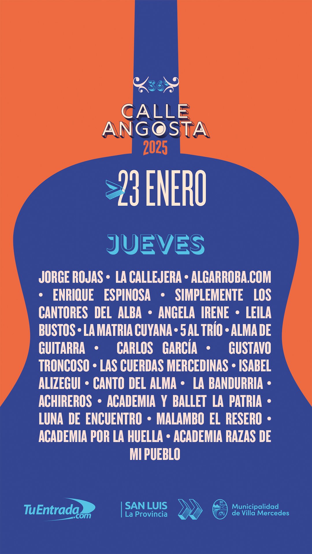 Durante la tercera noche, algunos de los que brillarán en la Fiesta de la Calle Angosta serán Por Siempre Tucu, Los Kijanos, Los Nombradores del Alba, Carnavaleros, Picahueso Malambo y Viveka Rosas. Mientras que el cierre de la cuarta noche será a puro cuarteto de la mano de La Barra.