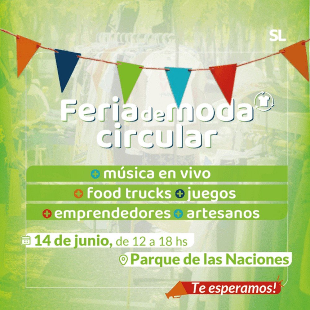 El próximo sábado 14 de junio, de 12 a 18 horas, el Parque de las Naciones será sede de una nueva edición de la Feria de Moda Circular que organiza la Municipalidad de San Luis, una propuesta sustentable que promueve el consumo responsable y el segundo uso de productos.