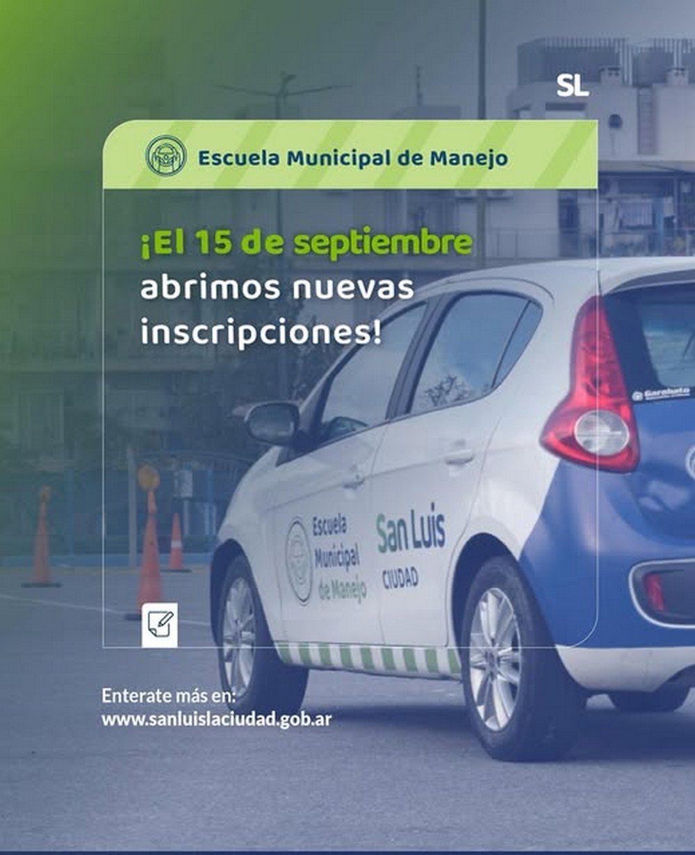 Este lunes 15 de septiembre se habilitaron los nuevos cupos para la Escuela Municipal de Manejo, que comenzará a dictar clases en octubre. Las inscripciones se realizan a través del sistema SIGEM (sigem.sanluislaciudad.gob.ar) desde las 8 de la mañana hasta agotar el cupo de 200 inscriptos.