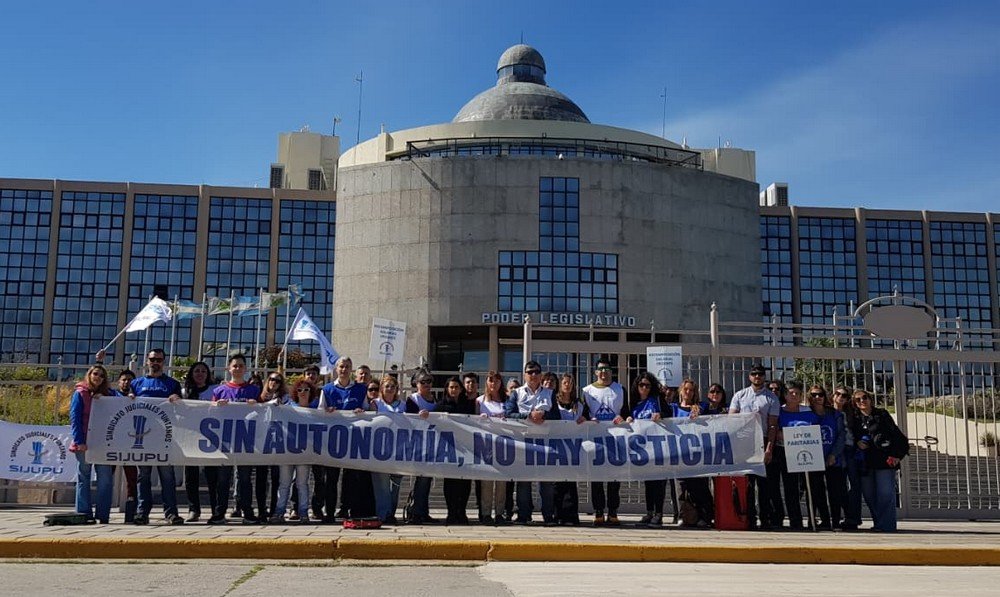 Y, si bien la semana pasada los judiciales pudieron ingresar a ver la sesión, este martes se tuvieron que quedar en la vereda. “Hoy los y las judiciales nos hicimos presente nuevamente, una sesión que debería ser pública, nuevamente nos encontramos con esta imagen, no dejaron ingresar absolutamente a nadie con la excusa de que las gradas estaban llenas. Es lamentable porque están tratando un presupuesto general de la provincia que tiene unos ajustes encubiertos, pero no solo para la Justicia, sino también para la salud y para la educación”, comentó Facundo Coria, secretario general del Sijupu, en diálogo con este medio en la vereda de la Legislatura.