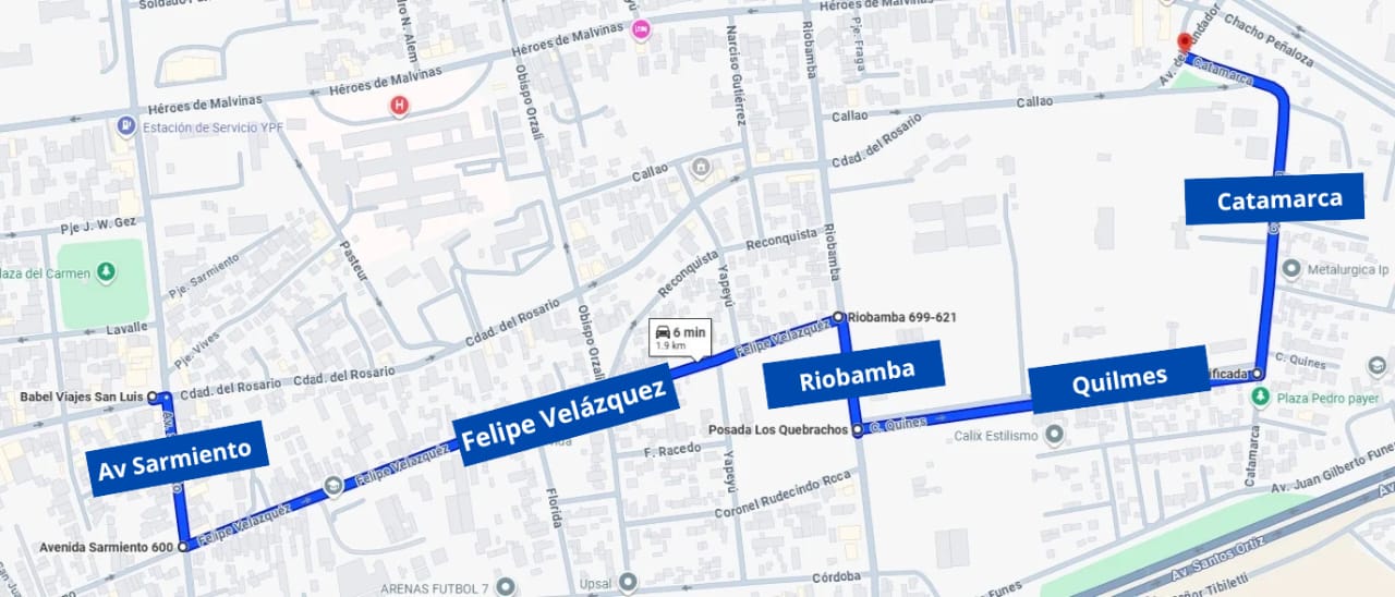 La medida estará vigente entre las 14:30 y las 18:00 y afectará a los recorridos que van hacia Potrero de los Funes, Juana Koslay, El Volcán, El Trapiche y La Florida, con las empresas María del Rosario, Panamericana y Juana Koslay.