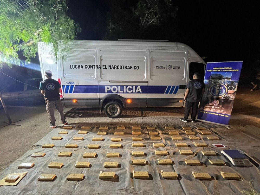 Tras el accionar policial, desde el Juzgado Federal de San Luis se dispuso la detención de dos hombres de 31 y 54 años de edad, por infracción a la Ley 23.737 de Estupefacientes.
