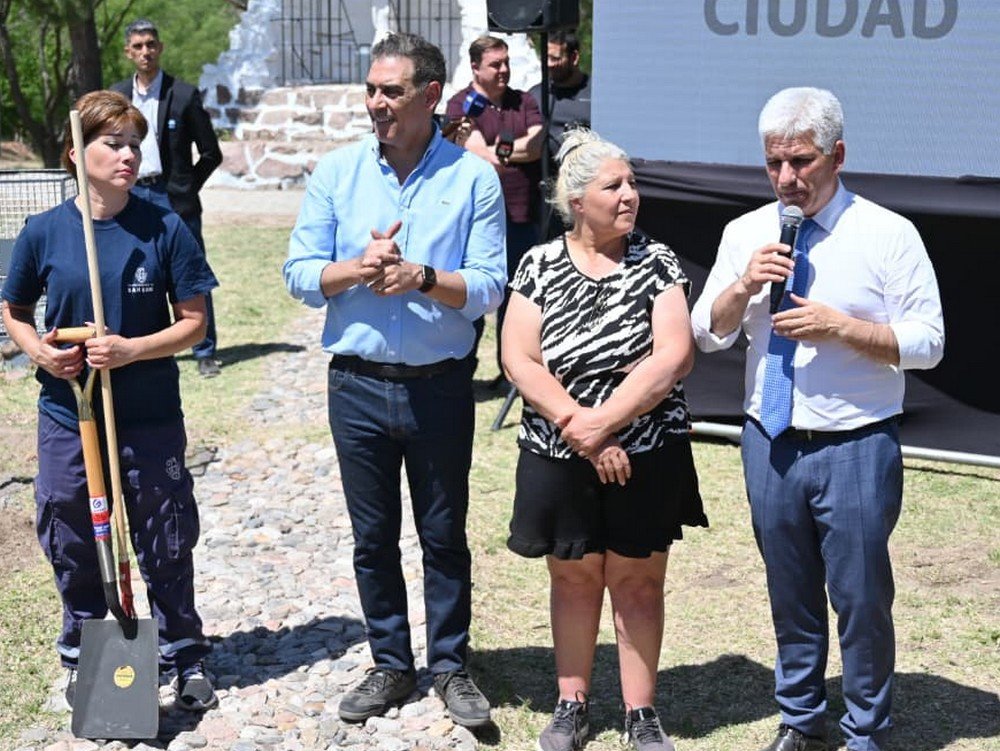 Más tarde, Poggi y Hissa se trasladaron al barrio situado cerca del río San Luis y la Casa de Gobierno para participar del acto de reinauguración de la plaza Virgen de Luján, donde el municipio invirtió $17.950.000.