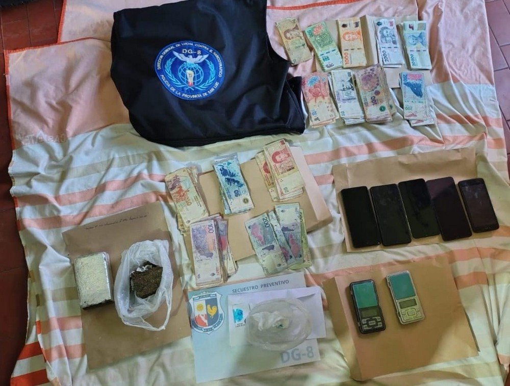 Ante el hallazgo, intervino personal de la Dirección General de Lucha Contra el Narcotráfico, que incautó marihuana suficiente para la elaboración de 1.146 dosis —valuadas en aproximadamente $3.400.000— y cocaÃna para 96 dosis, valuadas en unos $480.000. También se secuestraron dos balanzas digitales, cinco teléfonos celulares y $147.100 en efectivo.