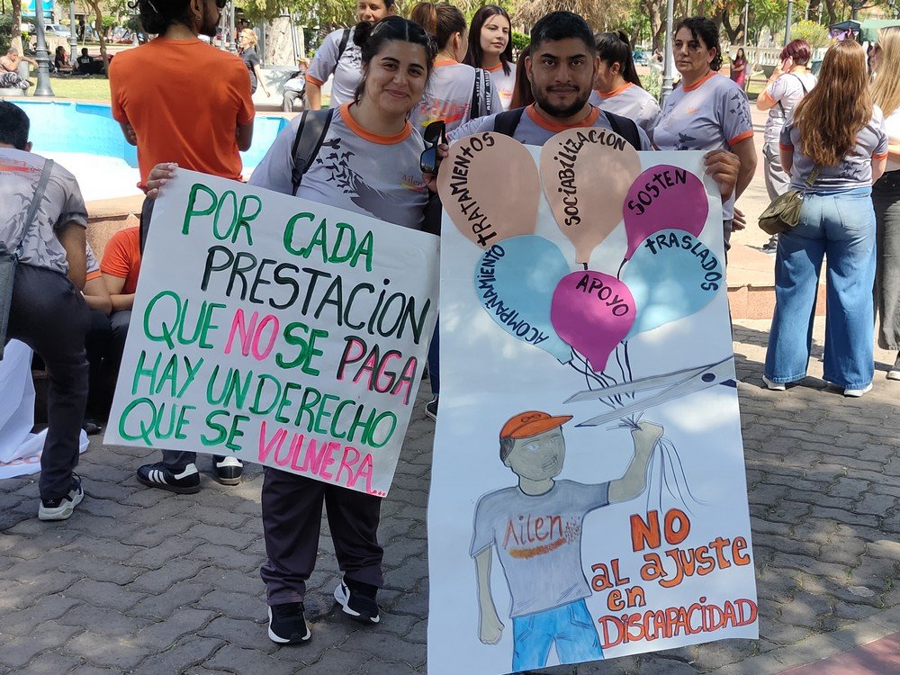Trabajadores de distintas instituciones que prestan servicios a personas con discapacidad, junto a algunos de sus pacientes, se manifestaron este miércoles por la mañana en plaza Pringles, en el marco de un cese de actividades por 48 horas. La medida busca reclamar al Gobierno nacional, encabezado por Javier Milei, la implementación de la Ley de Emergencia en Discapacidad.