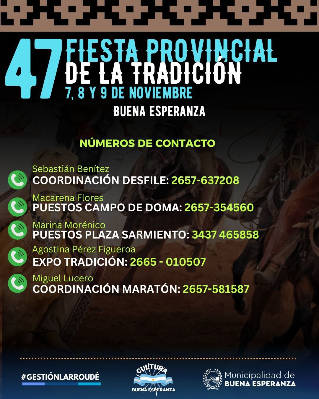 La intendenta hizo un especial hincapié en que la Fiesta de la Tradición “se hace con fondos exclusivamente municipales”, ya que el Gobierno provincial no colabora para su realización. Inclusive, lamentó que no haya sido incluida dentro de la grilla de los 50 festivales de la provincia. “Representa no solo nuestra identidad, sino el trabajo y la perseverancia de toda una comunidad que la ha mantenido viva durante 47 años”, remarcó Larroudé.