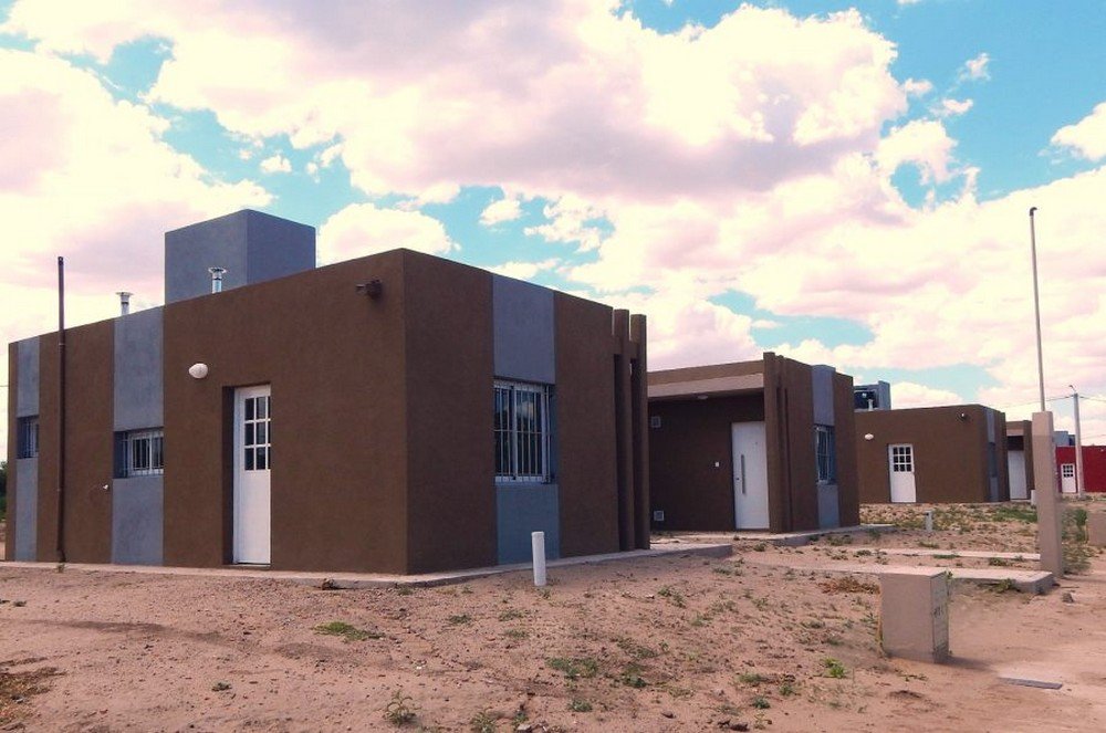 En cuanto al estado de avance, el organismo informó que las estructuras, muros y techos se encuentran completamente finalizados. El revestimiento exterior está concluido, con pintura aplicada en combinaciones de tonos tierra, gris y rojo, que otorgan una identidad visual uniforme al conjunto. Las aberturas —puertas y ventanas con rejas— ya están instaladas, al igual que los sistemas exteriores como luminarias, ventilaciones y tapas de medidores. Las veredas perimetrales están ejecutadas, aunque en algunos sectores aún se llevan adelante tareas de nivelación y limpieza.