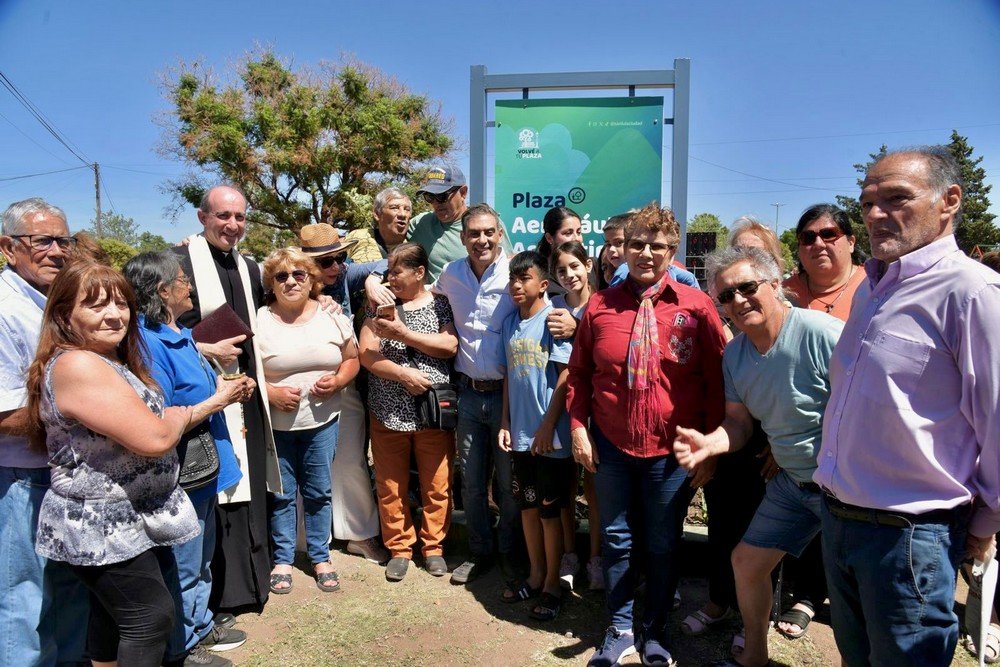 Posteriormente el padre Maximiliano Safigueroa bendijo las obras realizadas, bajo la protección de la Virgen de Luján, y luego el intendente y los vecinos realizaron el descubrimiento del cartel con el nombre de la plaza.
