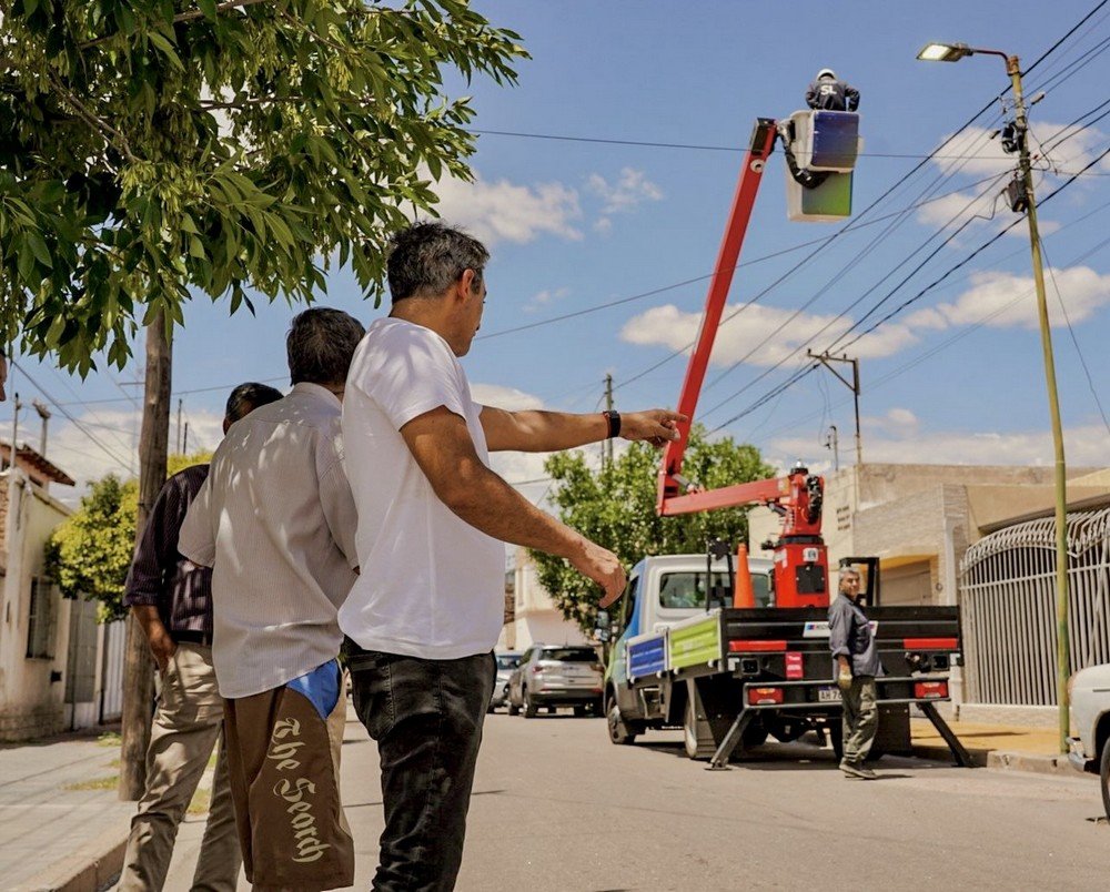El intendente de la ciudad de San Luis, Gastón Hissa, supervisó este martes los trabajos de alumbrado público que el Municipio ejecuta en distintos puntos de la capital. Los mismos se llevan adelante con la nueva hidrogrúa incorporada recientemente al parque automotor.