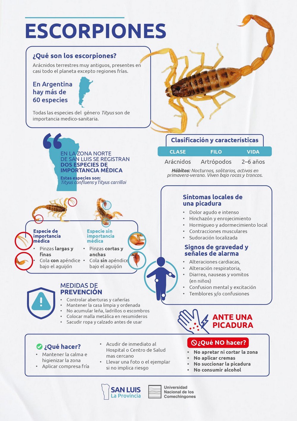 En el marco de un trabajo articulado entre instituciones académicas y organismos del Estado provincial, se desarrolló y presentó una infografía informativa sobre animales peligrosos, con especial énfasis en la escorpiofauna y su importancia sanitaria para el ser humano. La iniciativa surge a partir de un proyecto de investigación orientado a la prevención y el abordaje del escorpionismo en la provincia.