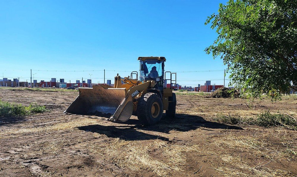 Desde la dirección de Obras de Arquitectura y Viviendas informaron que en el predio destinado al desarrollo habitacional se llevan adelante trabajos preliminares de preparación y acondicionamiento del terreno, con la intervención de maquinaria vial pesada. Las tareas permiten ordenar la superficie, mejorar las condiciones del suelo y adecuar el espacio para las próximas etapas de obra.