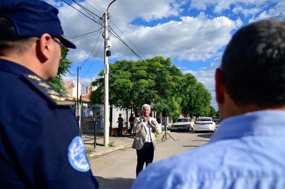 Uno de los puntos fue el barrio Maximiliano Toro, en la zona sur, donde se instalaron cinco alarmas en esquinas estratégicas, principalmente sobre la calle Granadero Mercedes Aguilera. El acto se realizó en la intersección con Perito Moreno y allí el Gobernador pidió a los vecinos “hacer un uso responsable del sistema y activarlo en verdaderas situaciones de emergencia”.
