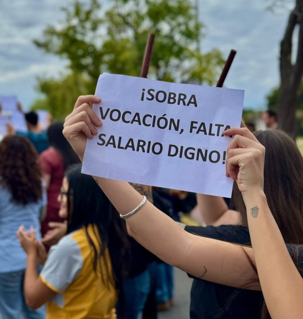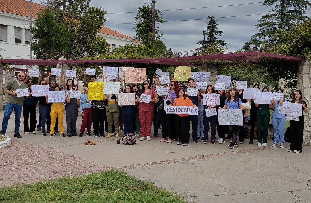 Un centenar de residentes médicos y no médicos de diversos puntos de la provincia comenzaron un paro de 48 horas en reclamo de aumento salarial. Para visibilizar la protesta este jueves por la mañana, un grupo de residentes de diversos establecimientos se manifestaron a metros del Hospital Pediátrico. “Me sobra mes al final del sueldo”, “Sobra vocación, falta un sueldo digno”, “La vocación no paga el alquiler”, “Sin residentes no hay hospital”, es lo que dicen algunos de los carteles que sostienen los jóvenes profesionales.