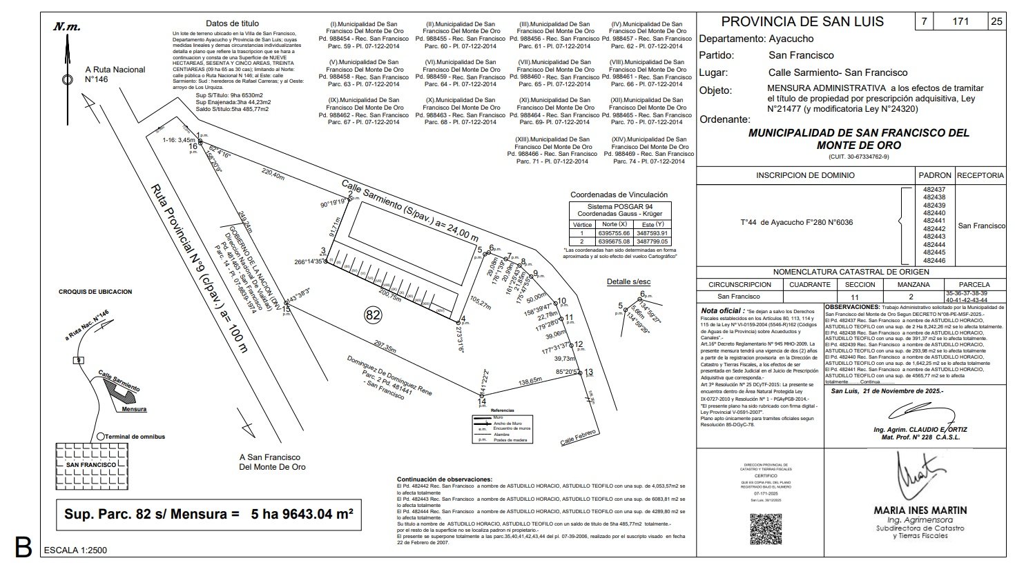 Al respecto, cabe señalar que el abogado proveyó a este medio la mensura del terreno en cuestión, la cual figura, efectivamente, a nombre de Horacio y Teófilo Astudillo. Por otro lado, también se destaca que en la publicación que se realizó en el Boletín Oficial de la provincia consta que la “documentación técnica pertinente” incluye el boleto de compraventa del terreno y la cesión de derechos hereditarios y posesorios de los herederos de Don Horacio Astudillo, pero no hay mención alguna a Teófilo.