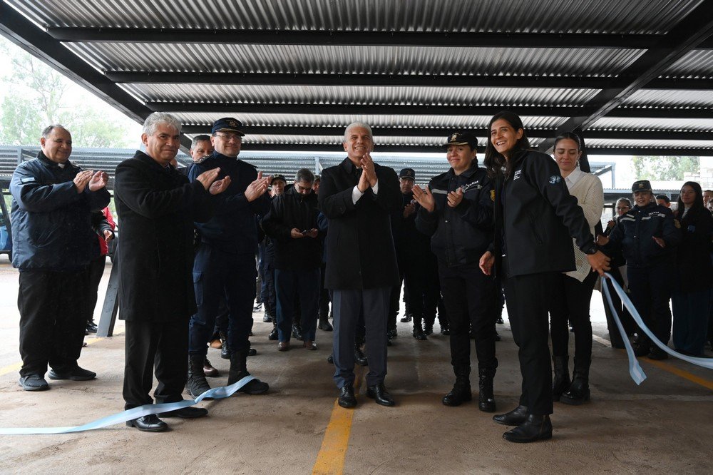 Después, la ministra de Seguridad Sosa agregó: “Estamos dándole una utilidad a la cochera de la Jefatura Central, haciendo la cochera cubierta. Sabemos que éste es el resguardo de los móviles del Comando, que no lo tenían. Había que pensar en esto porque tenemos que cuidar la flota vehicular. Tenemos muchos eventos climáticos y, en este sentido, es oportuno y propicio tener en cuenta estas cuestiones. De la misma manera lo estamos haciendo en las distintas dependencias que ponemos en valor, proveyendo el lugar para el cuidado de los patrulleros. Y lo mismo en la Unidad Regional N° 2, donde se está haciendo la base unificada de la Comisaría 8° y el Comando Radioeléctrico“.